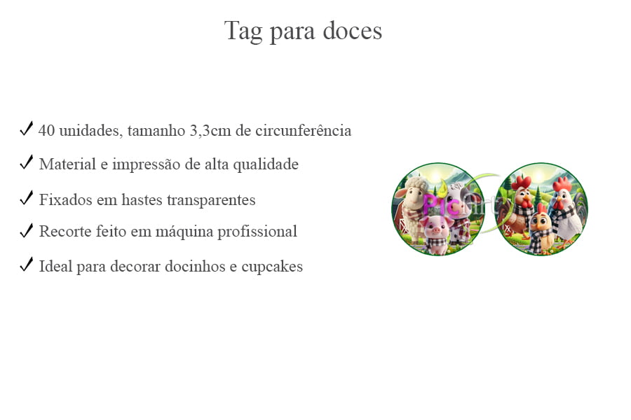 Os tags são usados para decorar os docinhos ou também mini cupcakes, deixando sua festa ainda mais bonita e personalizada.