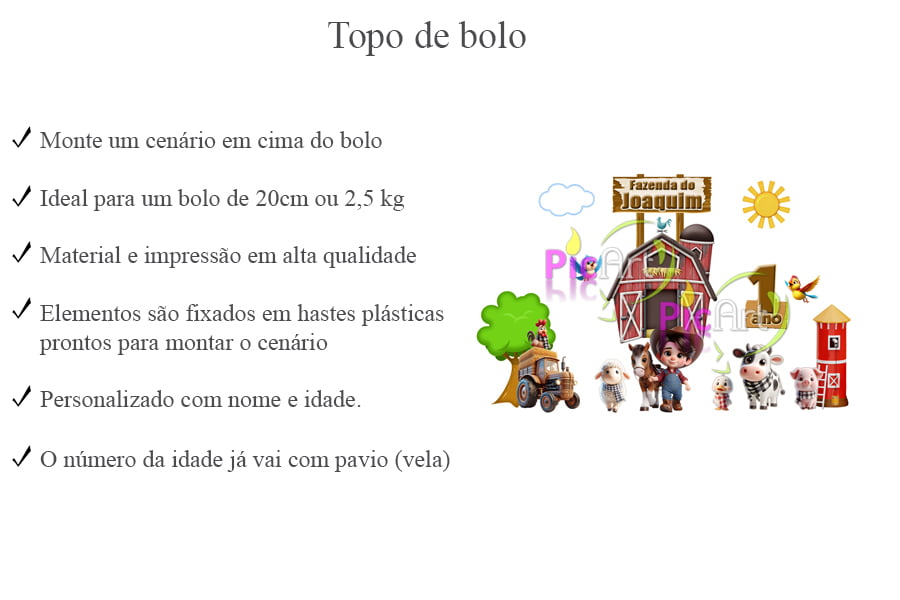 No momento da compra você deve informar no campo "Qual o tema desejado, nome e idade do(a) aniversariante?" os dados solicitados para que possamos fazer a personalização dos itens de acordo com o tema escolhido.